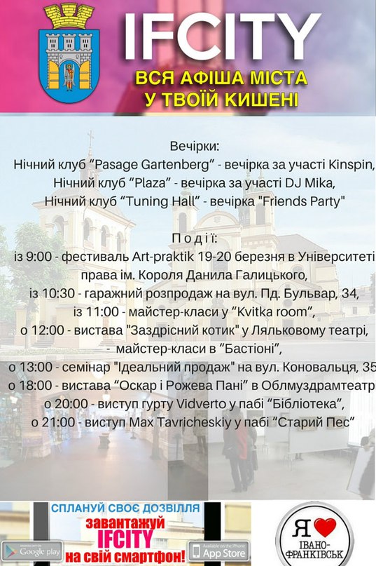 Що цікавого сьогодні у Івано-Франківську? Афіша подій на суботу, 19 березня від медіапартнерів "Фіртки" IF-City.