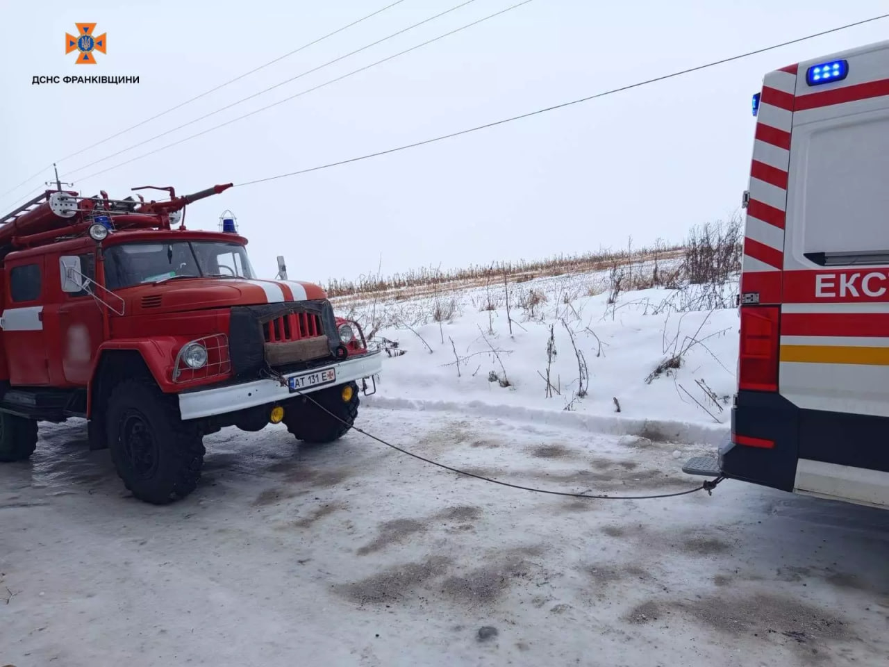 Так, 27 січня о 09:33 до Служби порятунку надійшло повідомлення про необхідність буксирування автомобіля екстреної медичної допомоги в селі Угорники Отинійської територіальної громади Коломийського району.