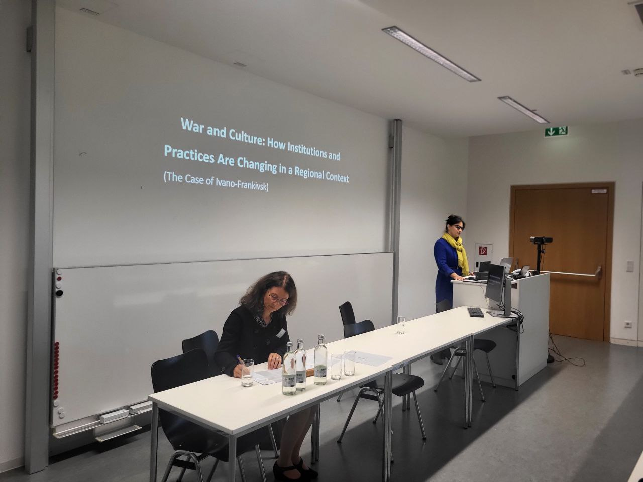 Ірина Матоліч виступила у межах панельної дискусії «Вища освіта, соціальне підприємництво та культурний менеджмент». Як єдина на заході представниця творчих спеціальностей, вона поділилася зі слухачами своїм дослідженням на тему: «Війна і культура: як змінюються інституції та практики в регіональному контексті (на прикладі Івано-Франківська)».