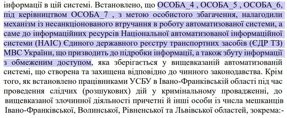 - Технічну частину забезпечував Олег – він клонував ключі доступу до ЄДР ТЗ МВС України, які були видані ТОВ «ВЕСТ СЕРВІС» та іншим підконтрольним фірмам.