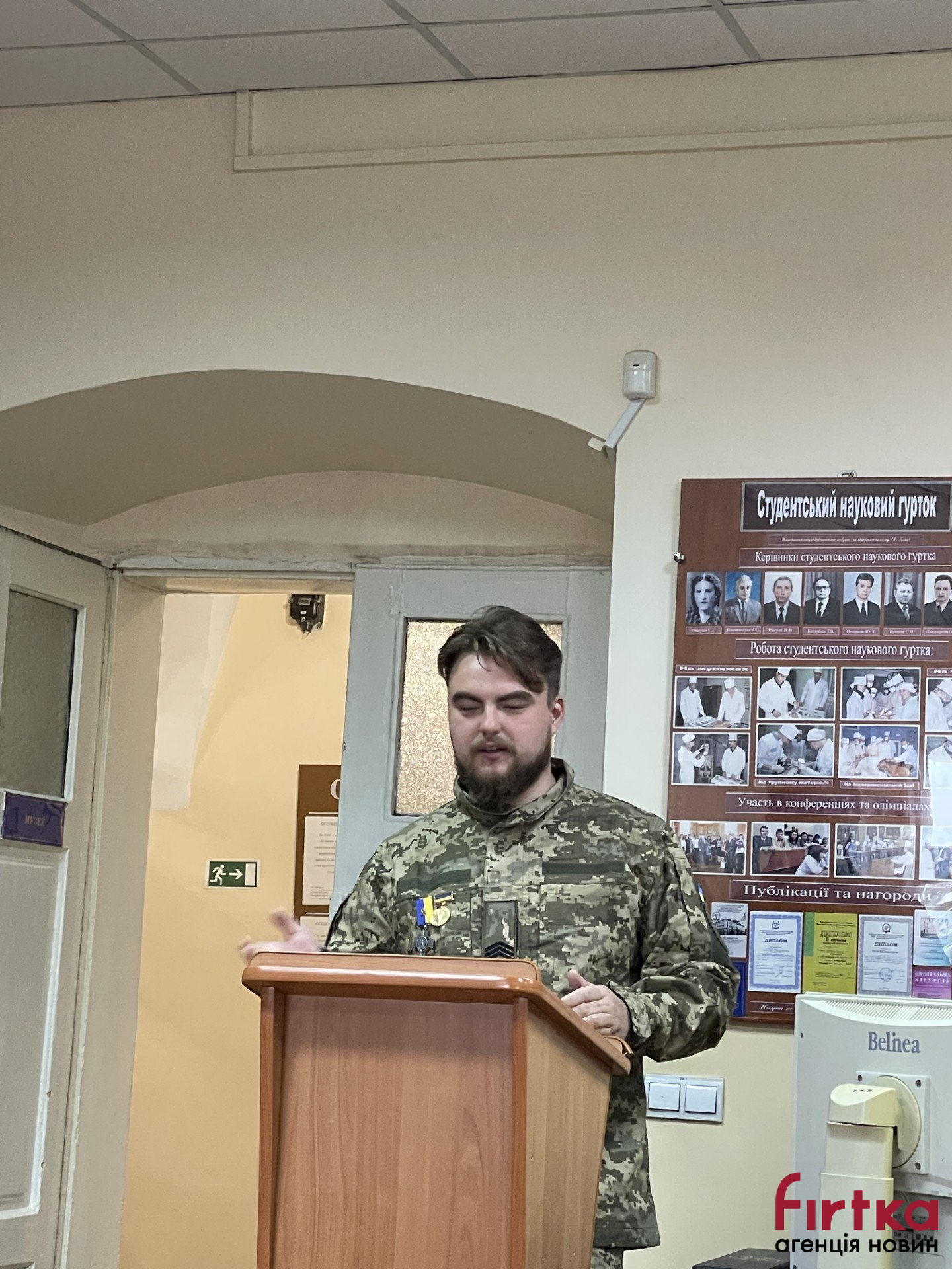 На кафедрі дитячої хірургії з курсом клінічної анатомії та оперативної хірургії ІФНМУ доцент Василь Кавин провів зустріч студентів з ветераном російсько-української війни, студентом 1 групи 3 курсу Олексієм Долженком.