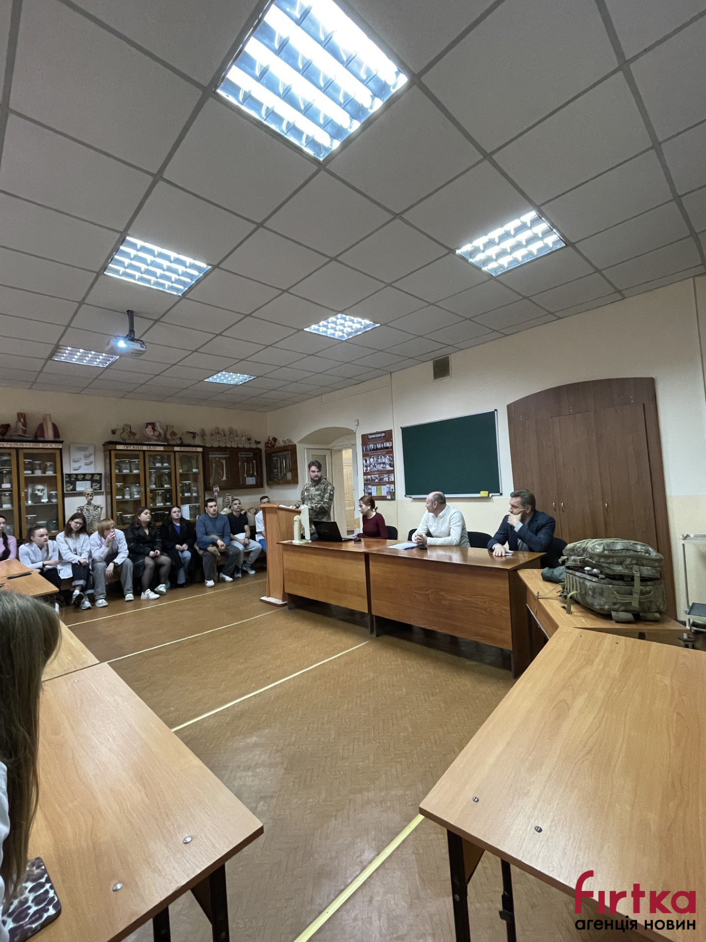Студенти мали можливість послухати історію ветерана й поставити йому запитання. Крім того, Олексій Долженко провів майстер-клас та розповів студентам як та чим заповнюється наплічник бойового медика.