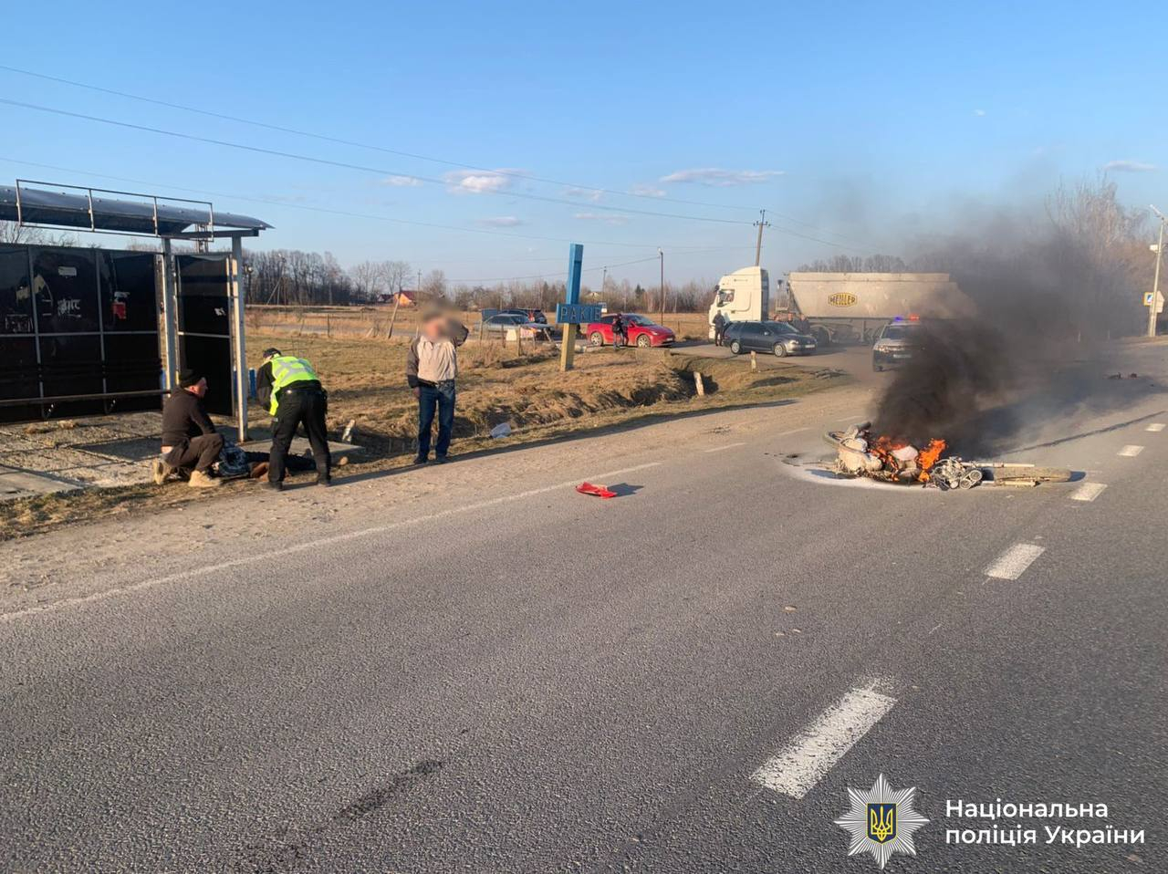 У результаті зіткнення неповнолітній мотоцикліст отримав тілесні ушкодження та був госпіталізований до медичного закладу. Після аварії мотоцикл загорівся.