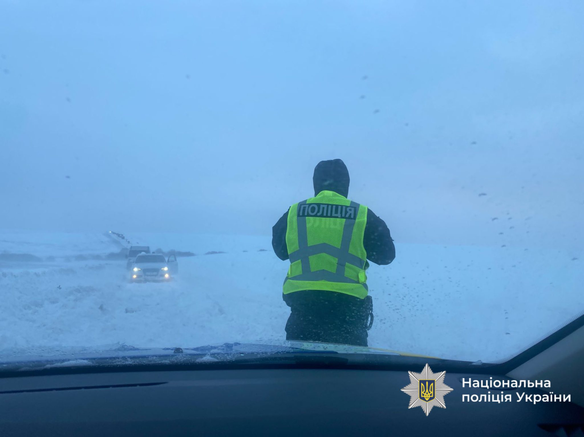 «Закликаємо водіїв за можливості утриматися від далеких поїздок. Снігоочисні роботи тривають. У разі виникнення надзвичайних ситуацій, ускладнення руху чи потреби в допомозі негайно звертайтеся до поліції за номером «102» або до рятувальників ДСНС — «101», — йдеться в дописі.