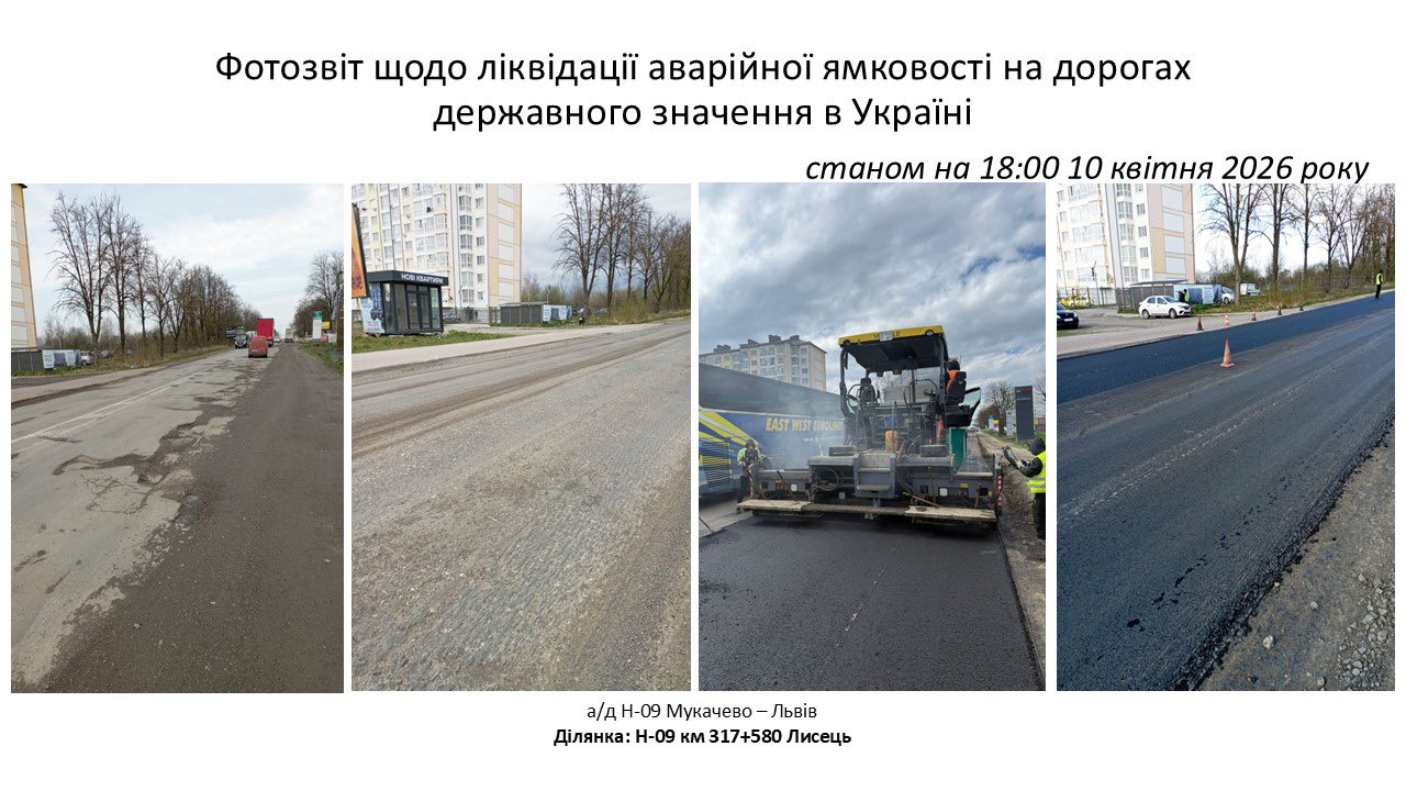 Станом на 10 квітня в області вже усунули аварійну ямковість на понад 87,5 тисячі квадратних метрів доріг державного значення.