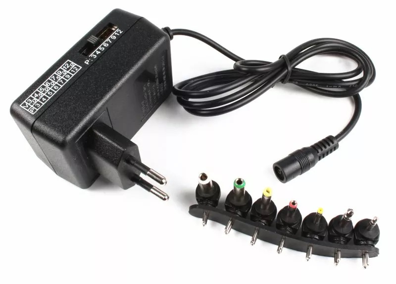 Такий адаптер має змінні наконечники або комплект насадок, кожен із яких підходить до певного типу роз’єму. Наприклад, якщо сьогодні вам потрібно зарядити ноутбук, а завтра — зовнішній накопичувач чи камеру, один блок живлення впорається з усіма цими завданнями.