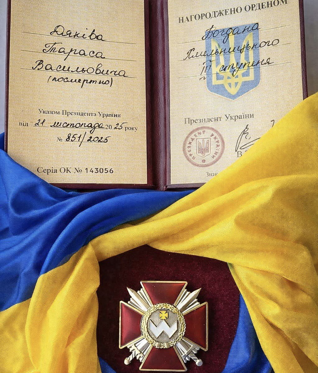 За мужність, самовідданість та відвагу під час захисту України орденом Богдана Хмельницького ІІІ ступеня посмертно відзначили подвиг прикарпатця — Тараса Дяківа.