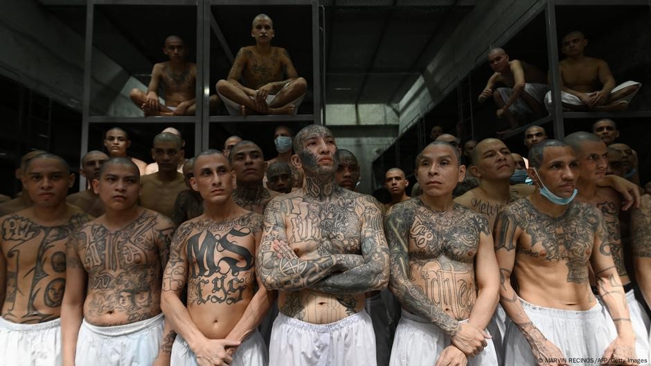 Колишні члени банд в тюремній камері СЕСОТ. На них — характерні татуювання