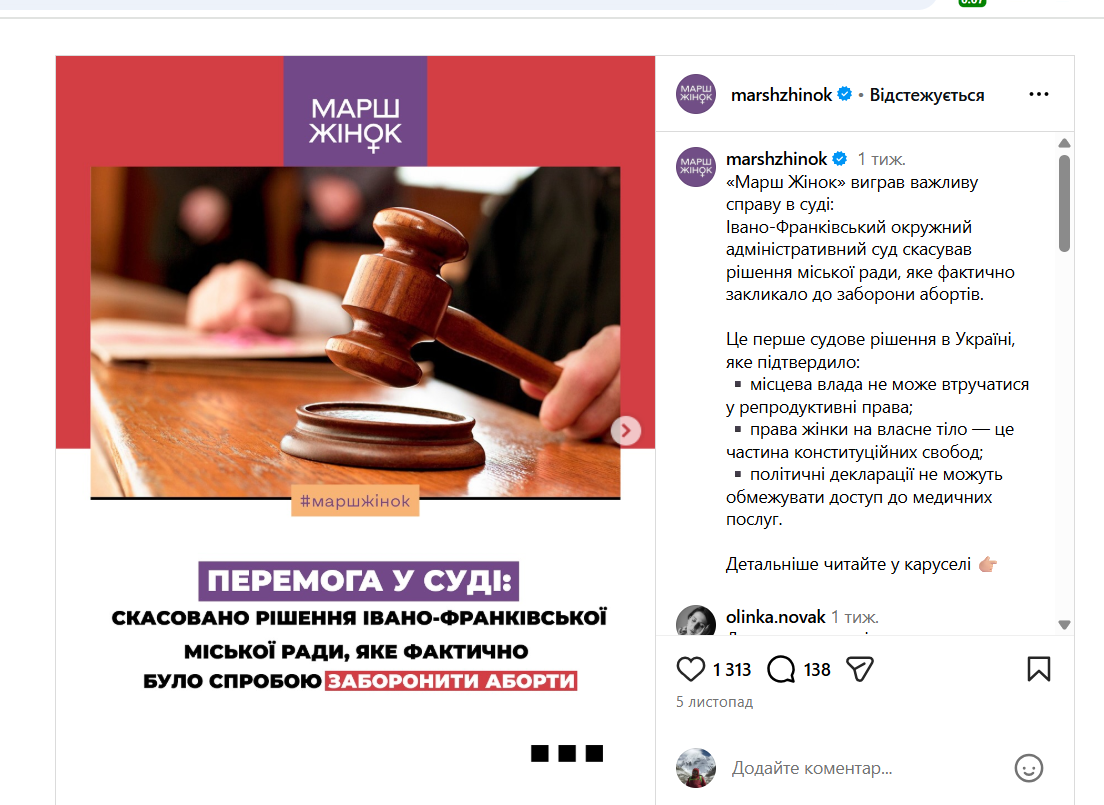 На інстаграм-сторінці ГО «Марш жінок» кілька днів тому з’ляється банер (наведений на початку цього тексту).