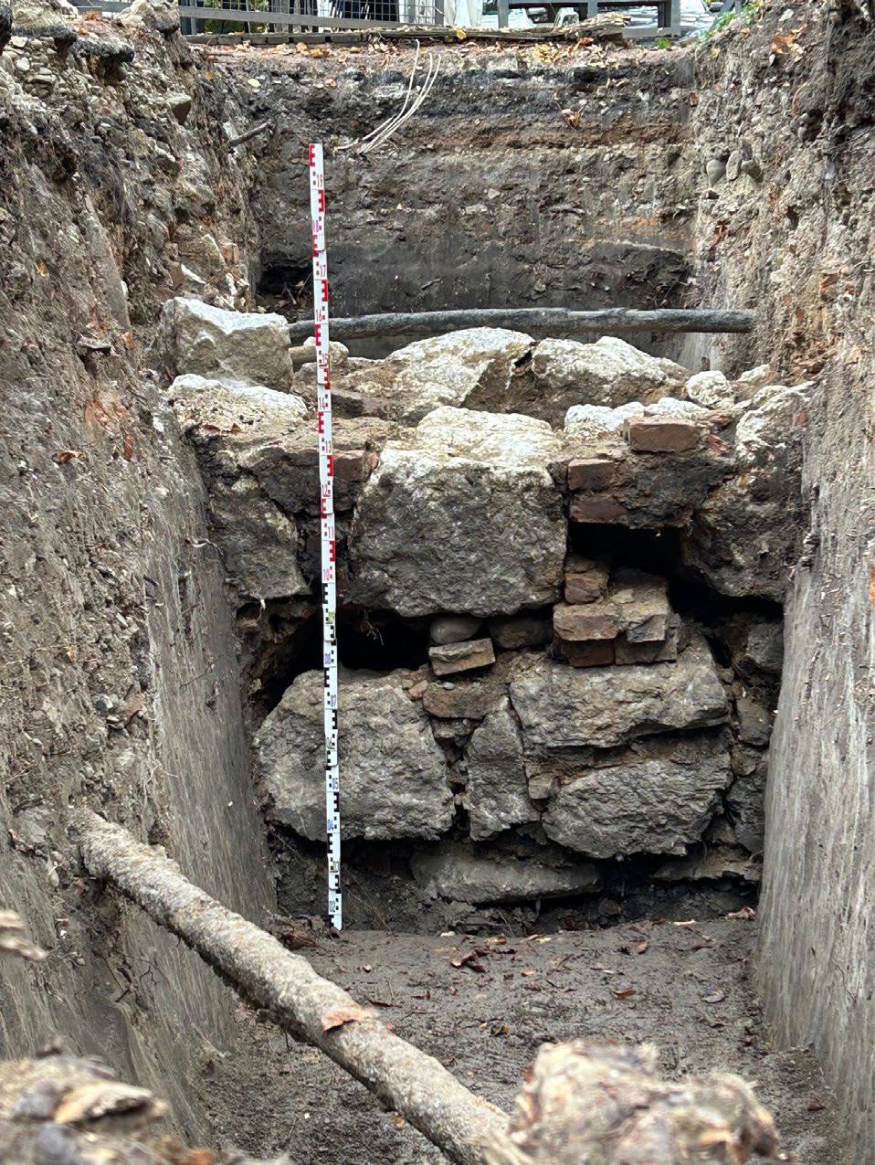 - Імовірні фундаменти центральної частини палацового корпусу 1680–1730-х років (траншея 1).
