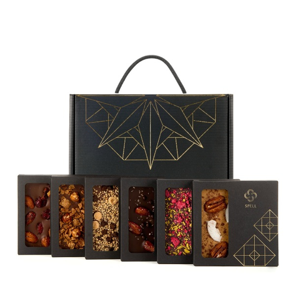 У таких випадках важливіше пакування і вигляд, ніж кількість всередині. Маленький солодкий набір у гарній коробці справляє краще враження, ніж великий пакет без оформлення. Spell Chocolate має формати різного розміру — від компактних наборів до повноцінних боксів, — усі з готовим пакуванням.