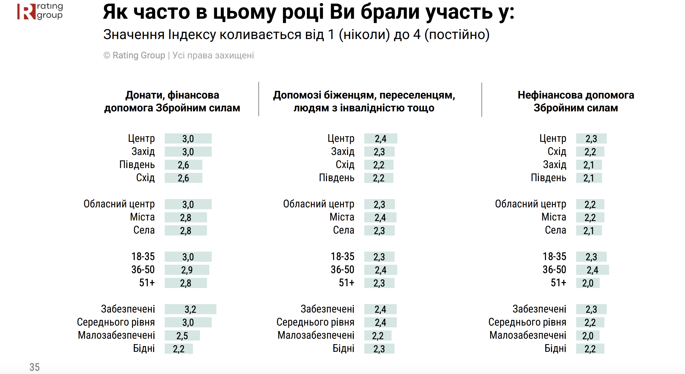 Соціологи відзначають, що більш активними у громадському житті є мешканці заходу та центру України, а також більш забезпечені громадяни.