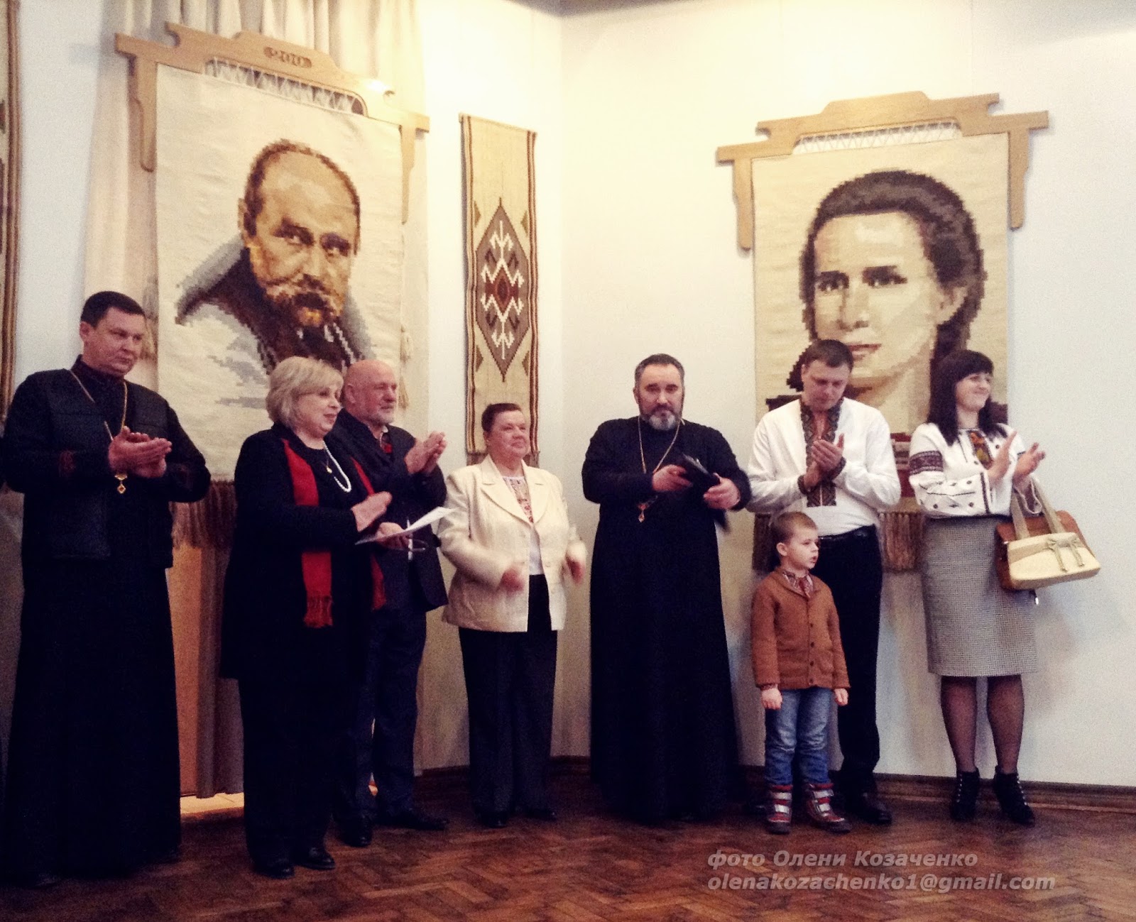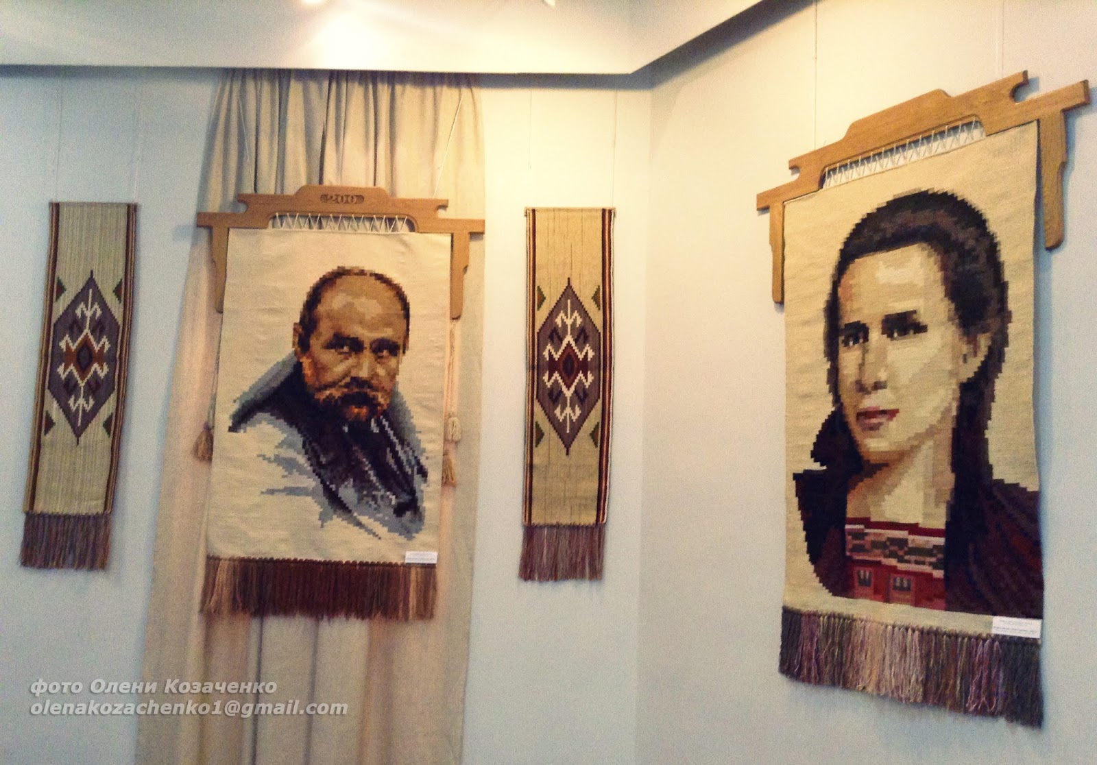 Серед представлених робіт були й портрети, виконані в гобеленах із зображенням трьох титанів української нації Тараса Шевченка, Івана Франка й Лесі Українки.