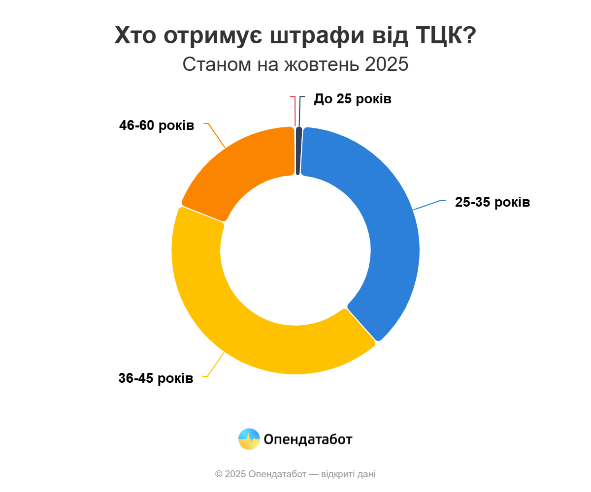 Переважна більшість оштрафованих — чоловіки віком від 25 до 45 років (80% випадків), тоді як на жінок припадає лише 98 випадків — це 0,2% від загальної кількості.