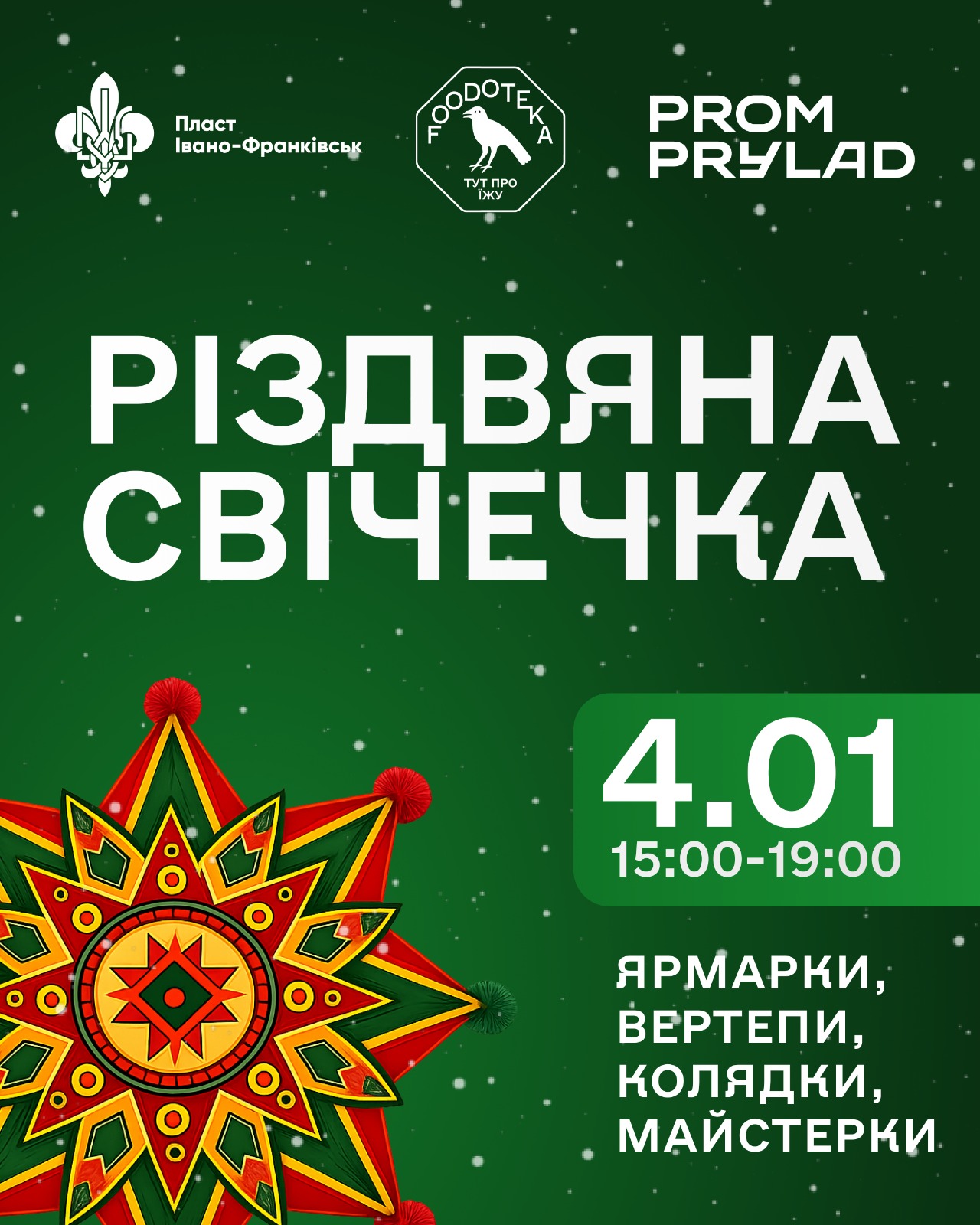 У неділю, 4 січня 2026 року з 15:00 до 19:00 год на локації «Промприлад» відбудеться щорічна благодійна акція «Різдвяна свічечка», яку організовують пластуни з метою збору коштів для підтримки наших захисників і захисниць.