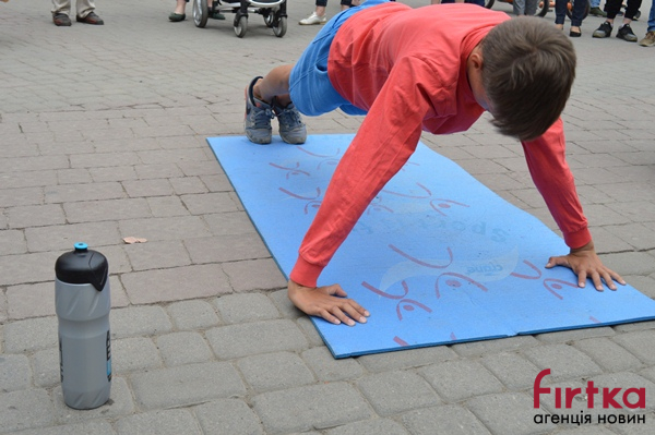 Цього разу учасники спортивного дійства мали на меті зробити 26 663 віджимання – саме стільки днів минуло від завершення Другої світової війни, інформує кореспондент Фіртки.