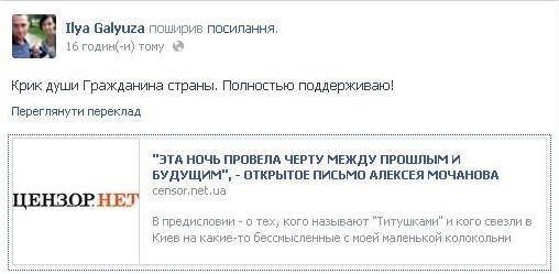 Екс-капітан "Зорі" підтримав відкритий лист Олексія Мочанова, де є, зокрема, такі рядки: "Загалом, підтримував МИРНИЙ протест чим міг і як міг. Мені 45 років, я офіцер запасу і мені не страшно - нічого. Краще померти стоячи, ніж жити на колінах. Ніякого пафосу. Я готовий відповісти за кожне слово, яке подумав - і написав. Ця ніч провела межу між минулим і Майбутнім. І моїм особисто, і моєї рідної Країни".