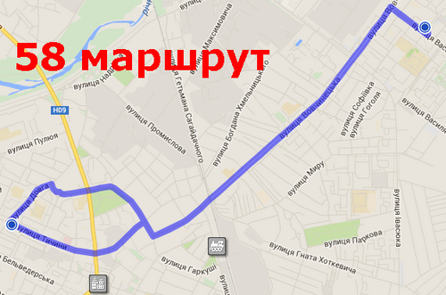 3. Базовий – 58-й маршрут: вулиця Симоненка – «Метро» (Галицька академія) – «Кобзарик» – Вовчинецька –Василіянок – ТРЦ «Панорама-Плаза» – Довга – Тичини – ЦУМ – Вовчинецька – «Кобзарик» – Симоненка. Логічніше би було «дотягнути» до «Арсена» чи «Епіцентру» через вул. 24 серпня.