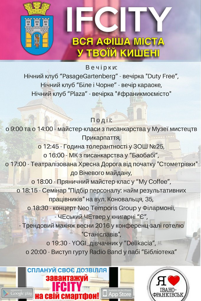 Що цікавого сьогодні у Івано-Франківську? Афіша подій на четвер, 21 квітня від медіапартнерів "Фіртки" IF-City.