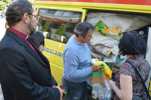 «Наші волонтери-благодійники походять з такого містечка, яке в перекладі означає: «там , де живе Бог». Пригнали реанімобіль троє волонтерів, найстаршому з них 76 років. Це повнопровідний реанімобіль, який оснащений всім стандартним обладнанням невідкладної медичної допомоги. Передадуть його на схід. Англійські волонтери закупили машину в Голандії, вартує вона 6 300 євро. Також привезли і інвалідний возик», - директор благодійного фонду «Франківський опір» Зінаїда Федорук.