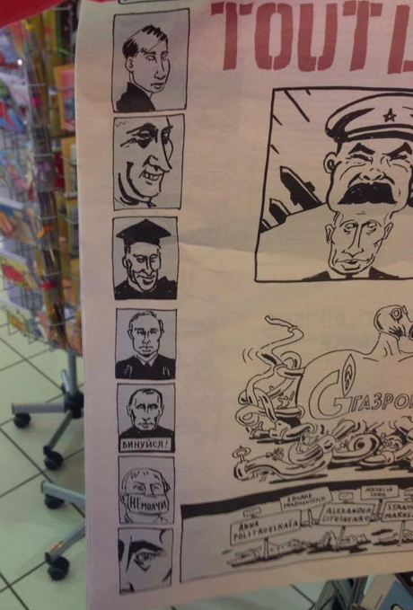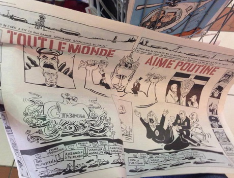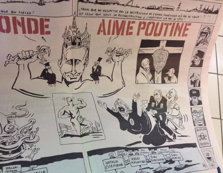Відоме французьке сатиричне видання Charlie Hebdo у свіжому випуску присвятило цілий розворот для карикатур на президента Росії Володимира Путіна.