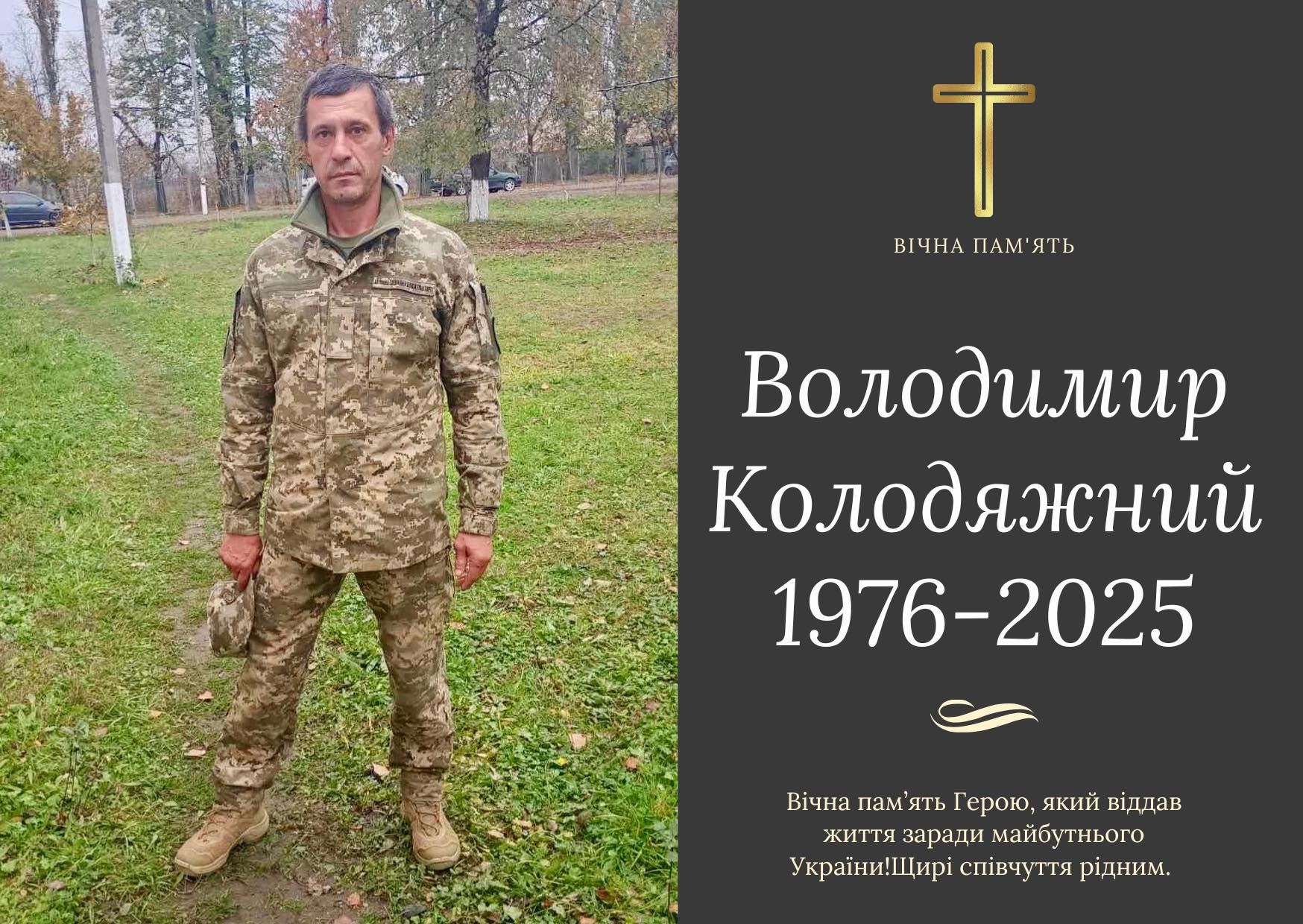 Під час виконання службових обов’язків зі зведення фортифікаційних споруд у районі населеного пункту Ізюм, Харківської області, обірвалося життя молодшого сержанта Володимира Колодяжного.