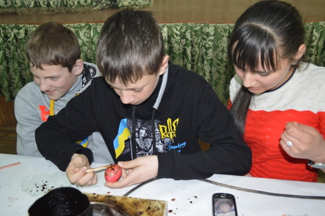 Після цього діти та педагоги з Херсонщини почали писати писанки. Варто зазанчити, що лише двоє з 29 дітей раніше займалися подібною роботою.