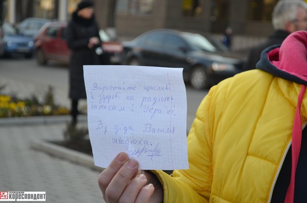 Уваги заслуговує записка від прикарпатця Василя Шведюка, який побажав дітям рости щасливими й здоровими на радіть батькам і Україні.