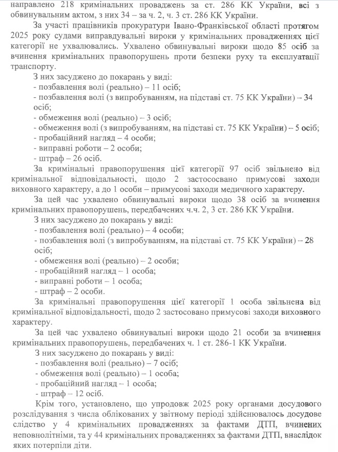Фіртка отримала офіційні дані від Івано-Франківської обласної прокуратури про кримінальні провадження ти вироки за 2025 рік, які стосуються ДТП.