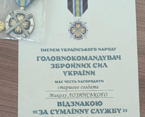 "Відомо, що Микола Лозинський своїми мужніми та професійними діями евакуював з поля бою п'ятьох поранених військовослужбовців та тіло загиблого побратима, тим самим забезпечив успішне виконання поставлених перед групою бойових завдань.Щиро вітаємо та пишаємось!" — йдеться в дописі.