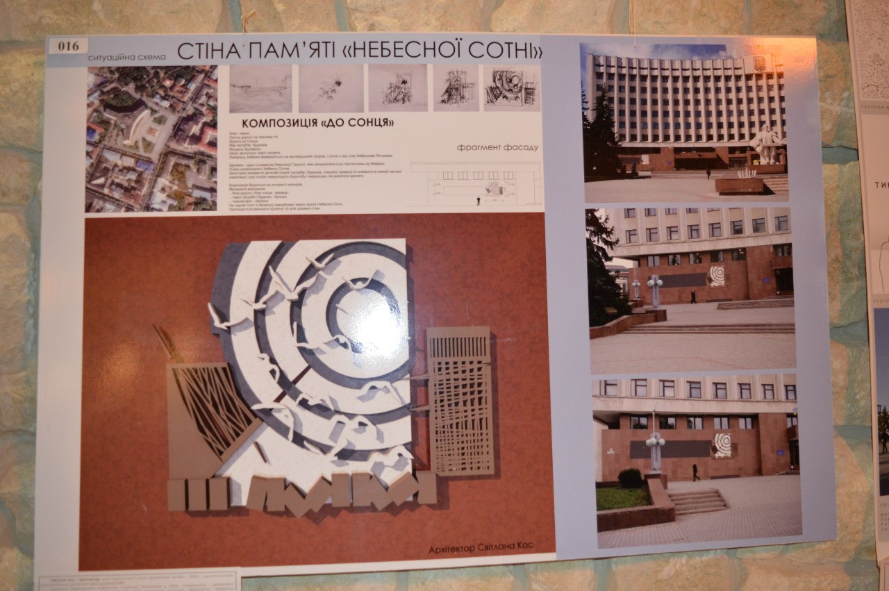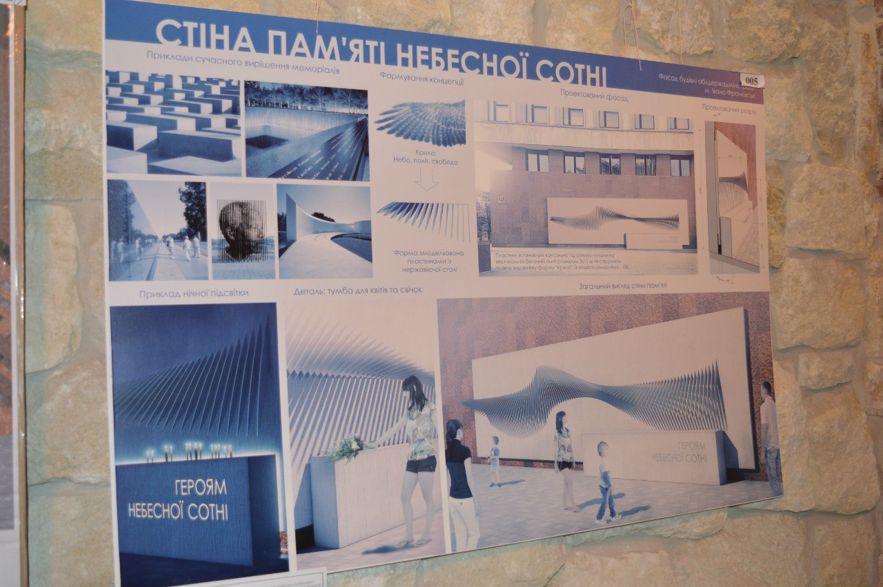 В Івано-Франківську в мистецькій галереї "Бастіон" виставили чотири проекти пам'ятного знака "Стіна пам'яті Небесної сотні", які у конкурсна комісія відібрала як кращі.