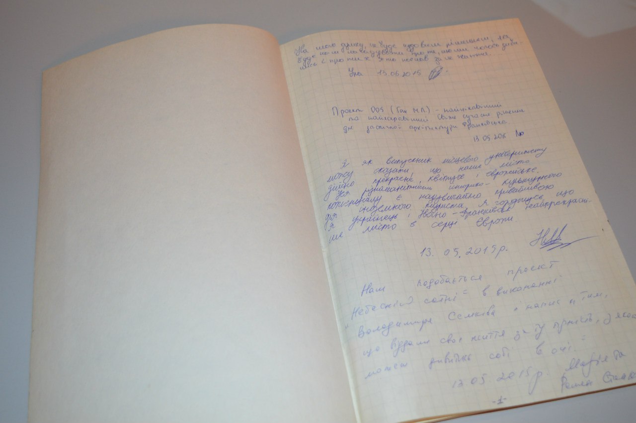 Тепер своє бачення проекту мають змогу запропонувати і мешканці міста. Для цього є книга пропозицій, де кожен може записати свої побажання, які будуть розглянуті авторами робіт і конкурсною комісією, передає Фіртка.