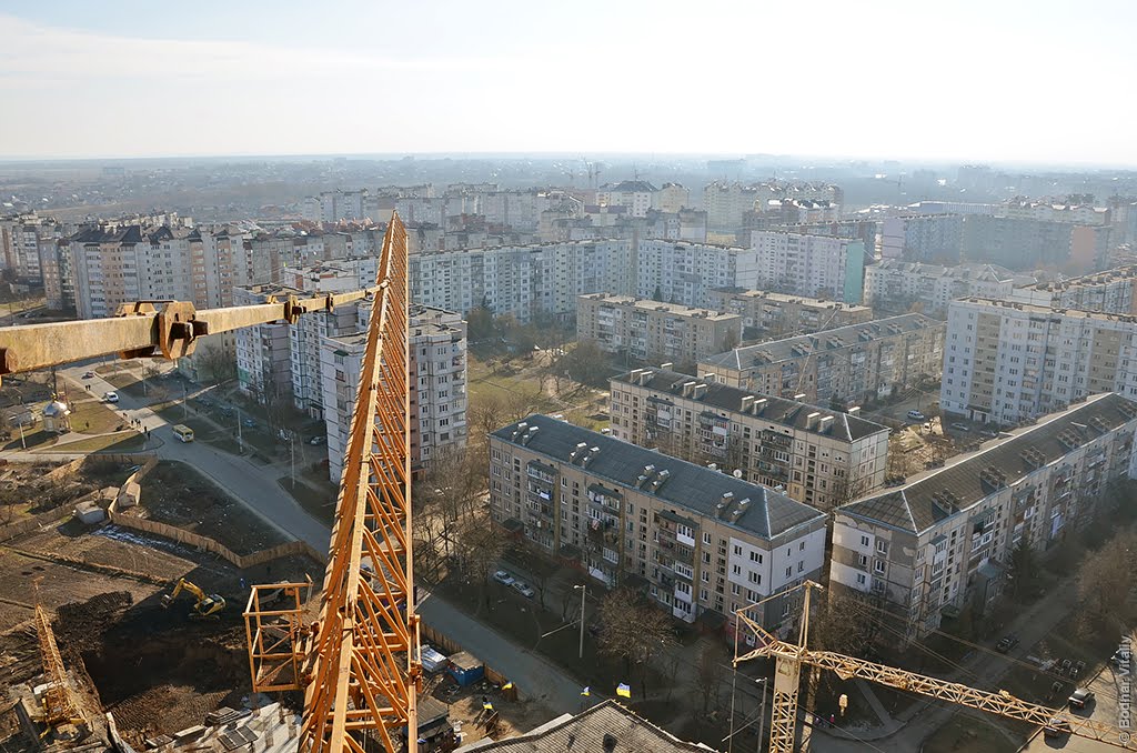Світлини мікрорайону «Каскад» були зроблені з висоти 65 метрів, найвищого крану міста, зробив фотограф Віталій Боднар, пише Фіртка.