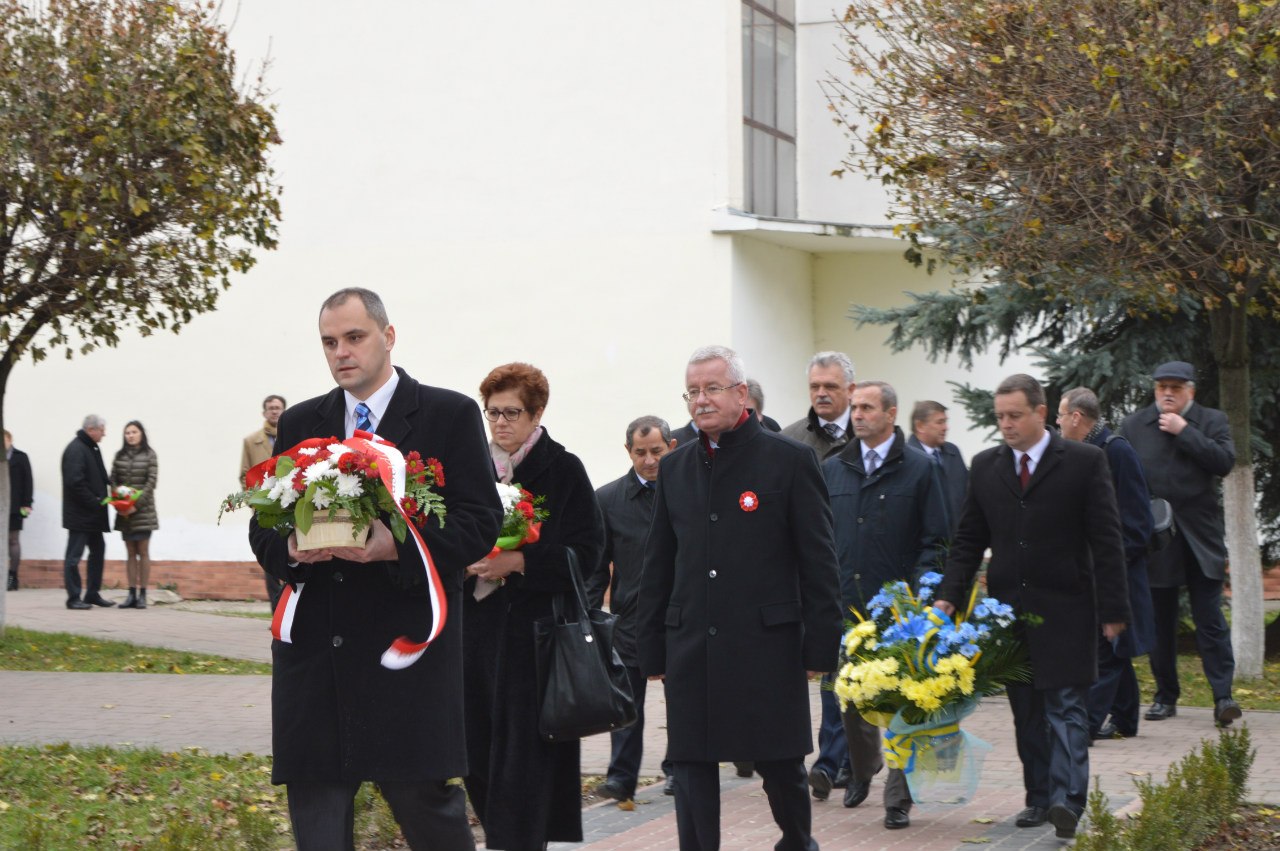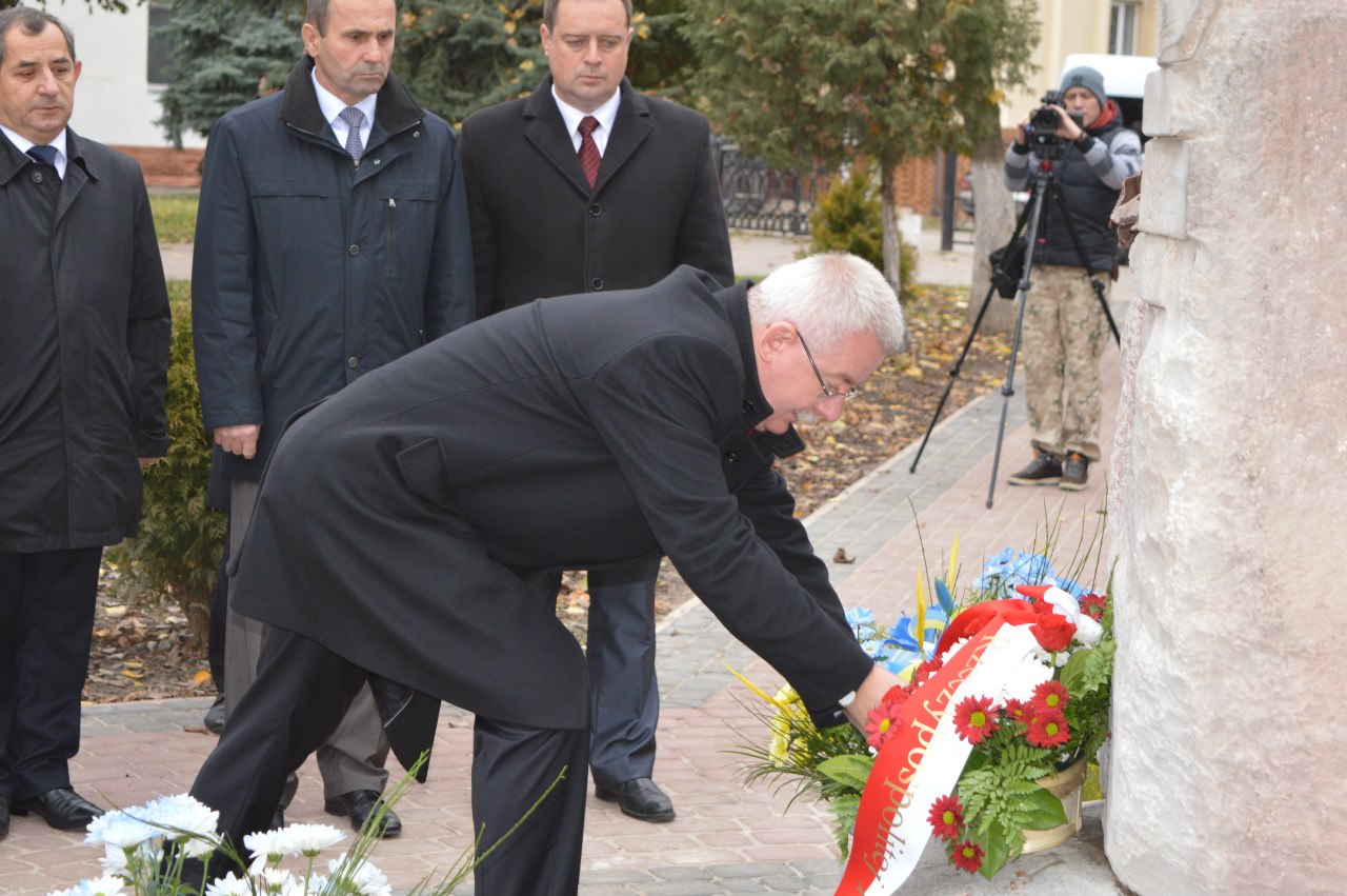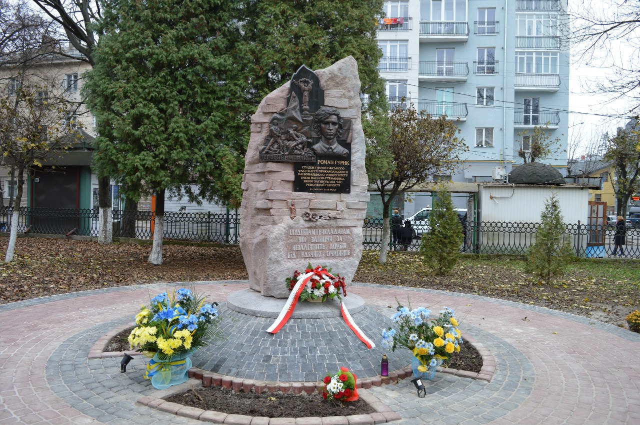 Генеральний Консул Республіки Польща у Львові Ярослав Дрозд разом із дружиною Беатою Дрозд поклали квіти до пам'ятної стели Роману Гурику в дворі Прикарпатського університету.