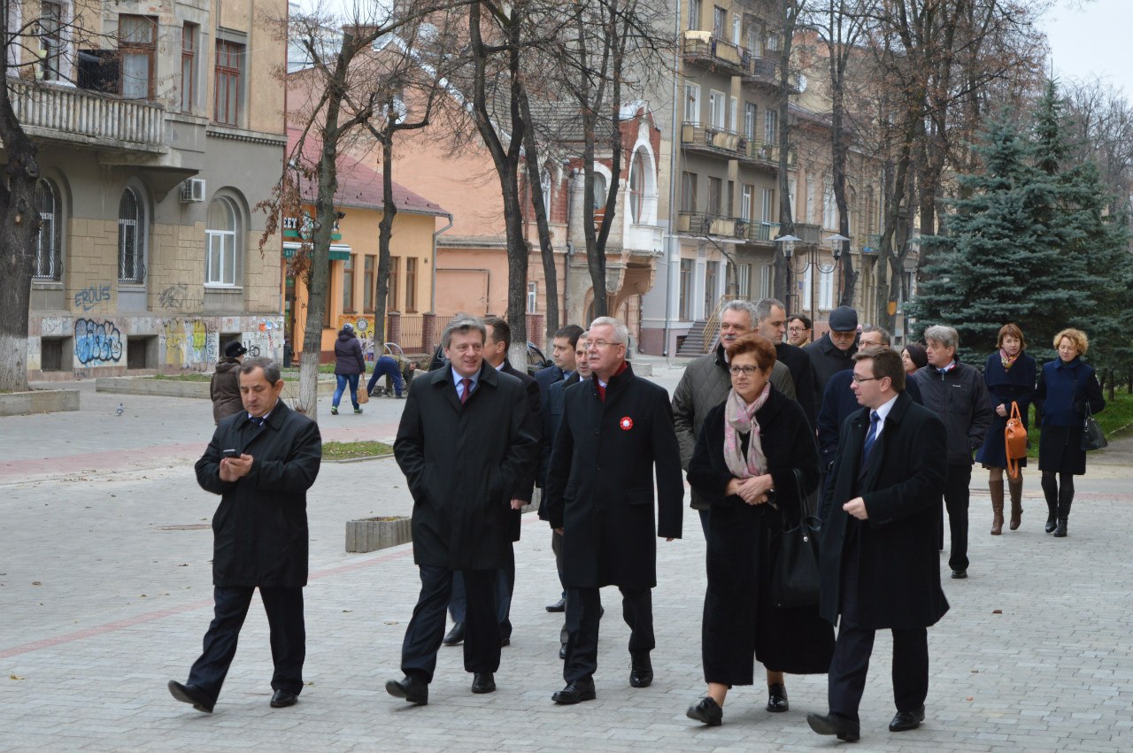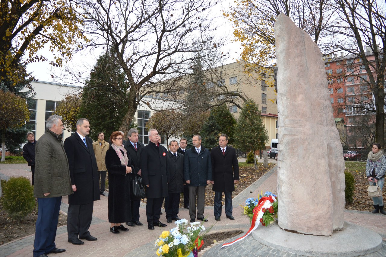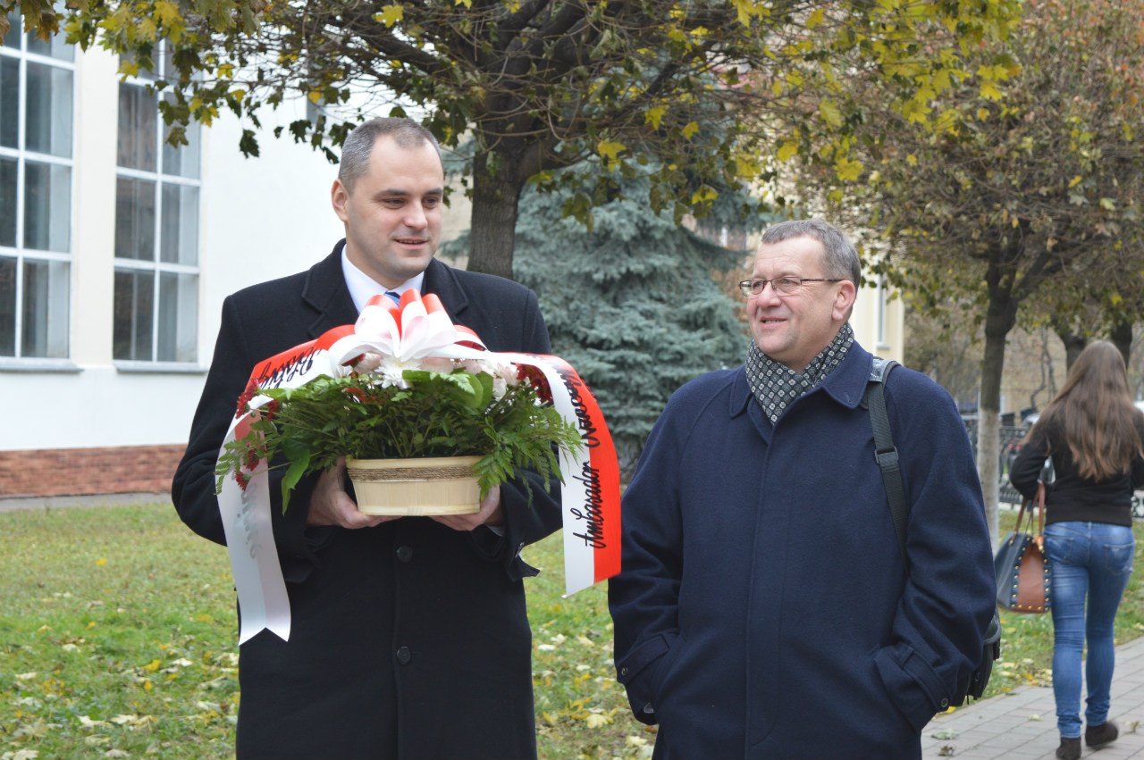 Генеральний Консул Республіки Польща у Львові Ярослав Дрозд разом із дружиною Беатою Дрозд поклали квіти до пам'ятної стели Роману Гурику в дворі Прикарпатського університету.