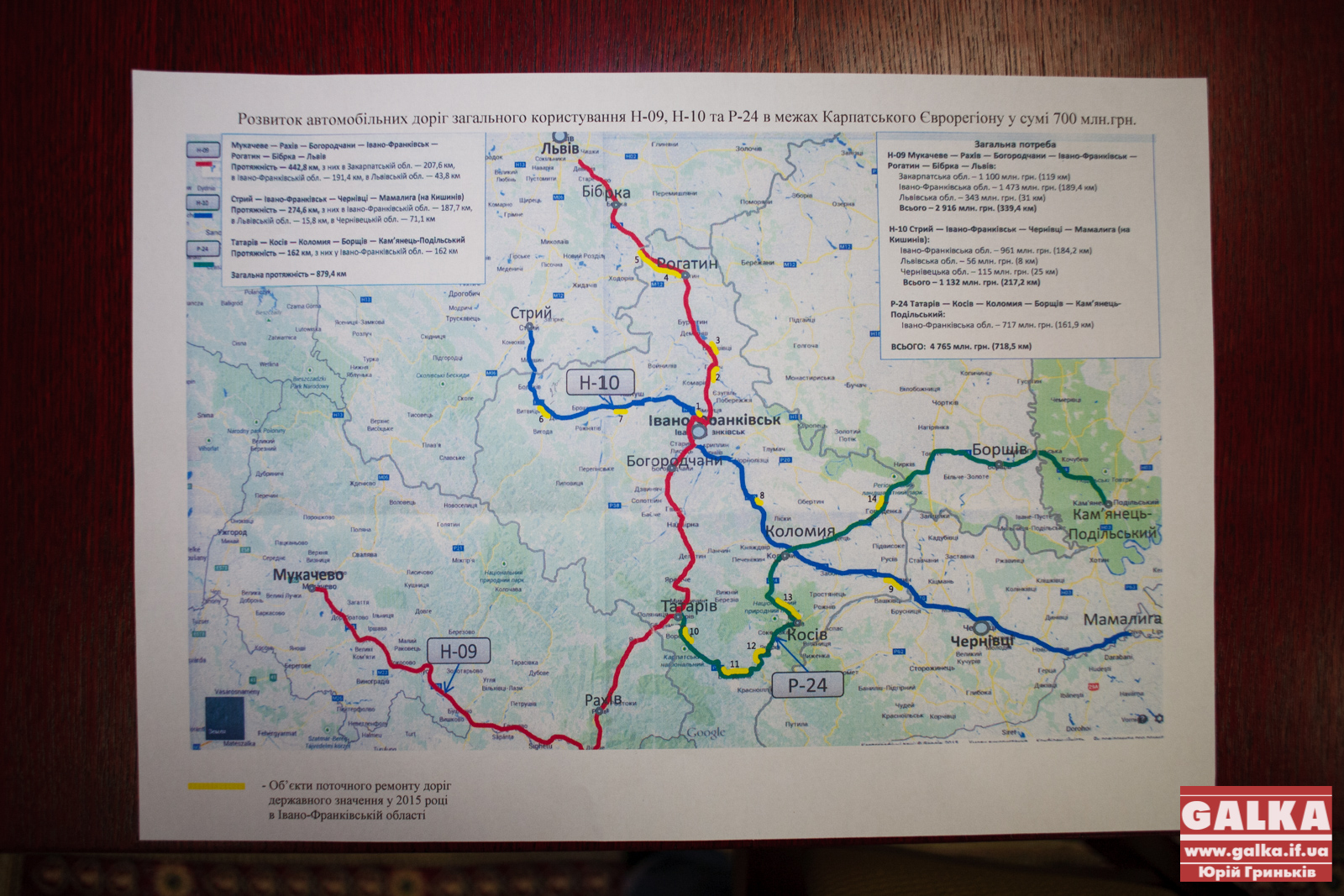 Також Проців продемонстрував карту, на якій жовтим кольором позначені ділянки, які планують відремонтувати у 2015 році.