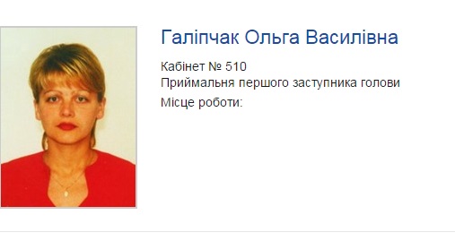 - Галіпчак Ольга Василівна – секретарка першого заступника голови обласної ради Олександра Левицького, який під час Євромайдану прославився прізвиськом "Чоловік Божий".