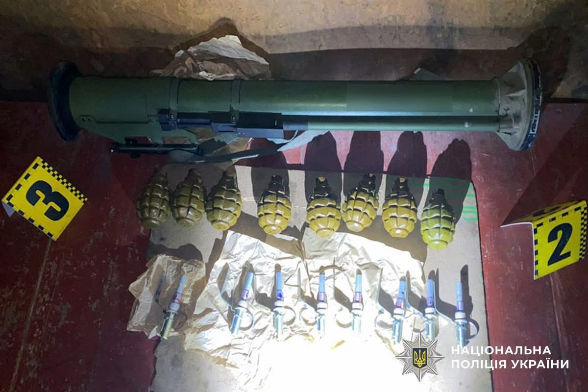 Поліцейські вилучили вісім гранат Ф-1 із підривачами, понад дві тисячі набоїв калібру 5,45 мм, а також гранатомет. Усе вилучене направили на експертизу.
