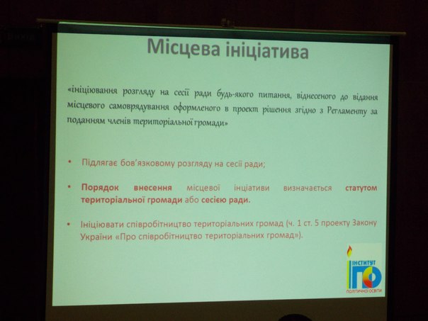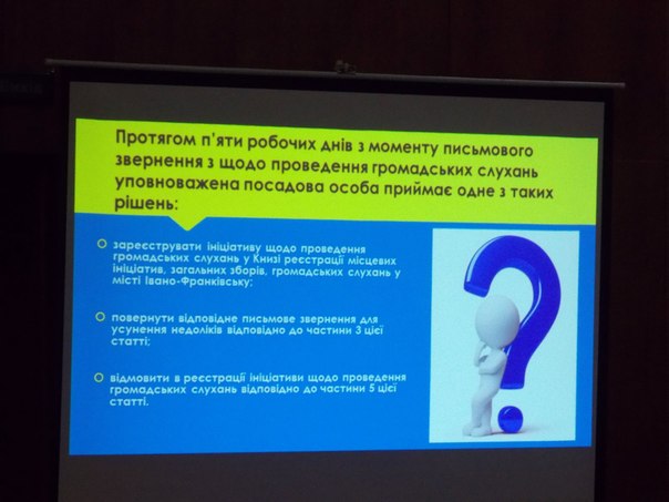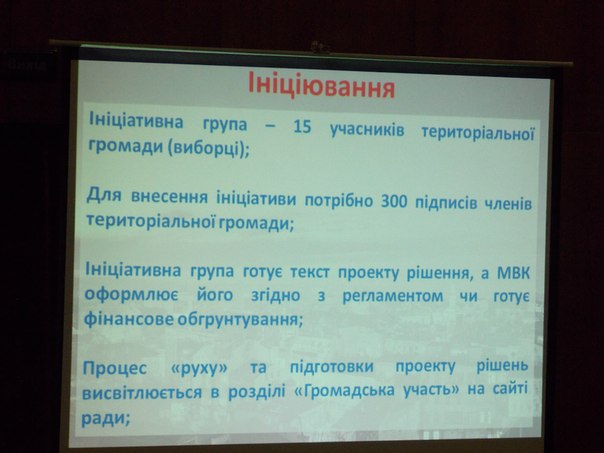 "Місцева ініціатива – це проект рішення що стосується Івано-Франківська, який висувають не депутати, а громада міста. Для її створення, згідно Положень, потрібна ініціативна група з принаймні 15 осіб і підтримка громади у вигляді 300 підписів. Далі у міській раді впродовж 5 днів мають зареєструвати ініціативу і висвітлити інформацію про неї на своєму сайті. Ініціативна група готує проект рішення, а міськвиконком має оформити його згідно з регламентом. Місцеві ініціативі мають бути обов’язковими до розгляду на сесії. Більше того, на сесії їх мають розглядати першочергово", - пояснив Случик.