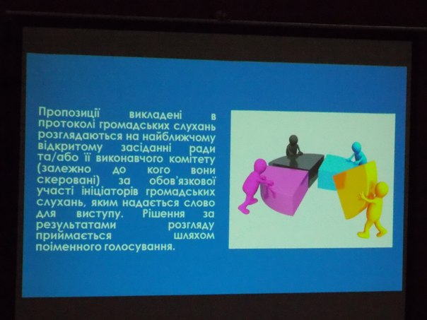 Тарас Случик зауважив, що громадські слухання є способом «ніжного» тиску на владу чи пропонування їй якихось рішень. Натомість місцева ініціатива – це механізм висування якоїсь ідеї.