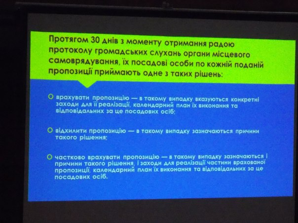 Загалом, до Статуту внесли 30 нових статей, які регламентують проведення громадських слухань, де можна розглянути будь-які проекти рішень виконкому чи міської ради, заслухати звіти про роботу посадовців. Крім того, встановлені конкретні часові рамки, відповідно до яких представники місцевої влади мають реагувати на пропозиції громадськості.