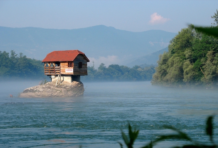 Стоїть він на середині річки Дріни неподалік від міста Байіна-Башта, Сербія. Дріна взагалі вважається справжньою перлиною Сербії.