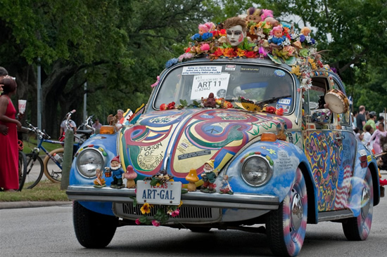 Ось таке яскраве і веселе автошоу влаштовують собі американські автолюбителі в Хюстоні. Якщо в першому параді 1988 року брало участь всього 40 художньо оздоблених автомобілів, то в 2010 - близько 300...