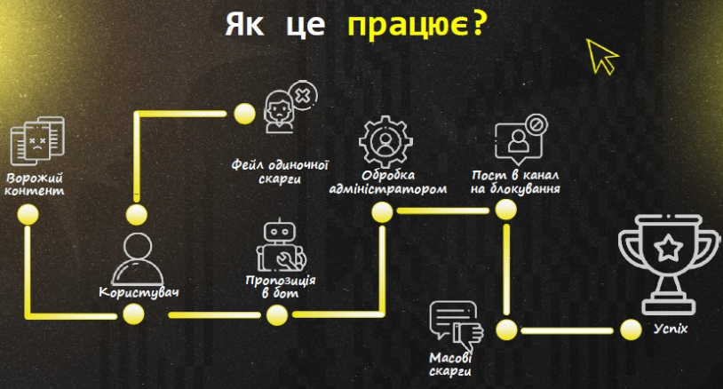 - Подати повідомлення про кіберзлочин або шахрайство через спеціальну форму, що допоможе правоохоронцям оперативно реагувати на загрози.