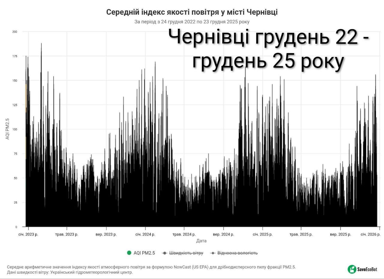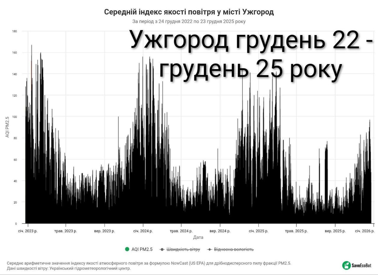 Показник якості повітря AQI в Івано-Франківську 19 грудня збільшився до 179, що є найвищим рекордним індексом серед всіх обласних центрів України.