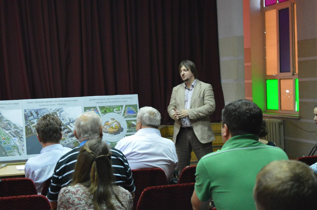 Сьогодні в актовому залі Інституту мистецтв Прикарпатського національного університету імені Василя Стефаника відбулась презентація та громадське обговорення проекту облаштування паркової зони «Громадського Еко-парку» поруч міського озера.