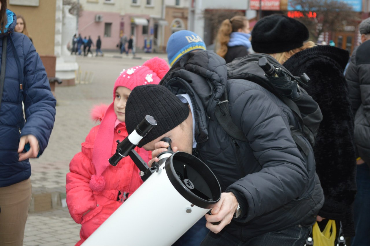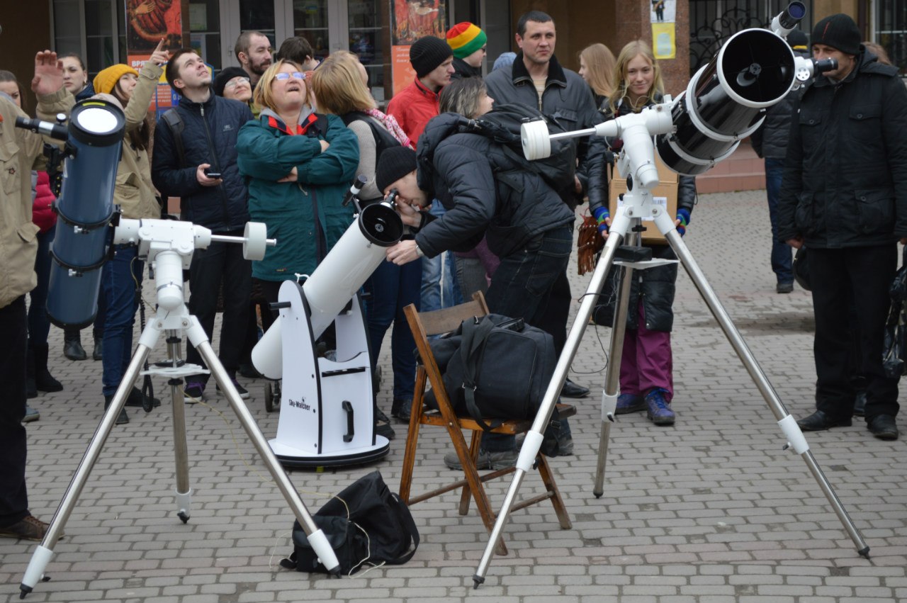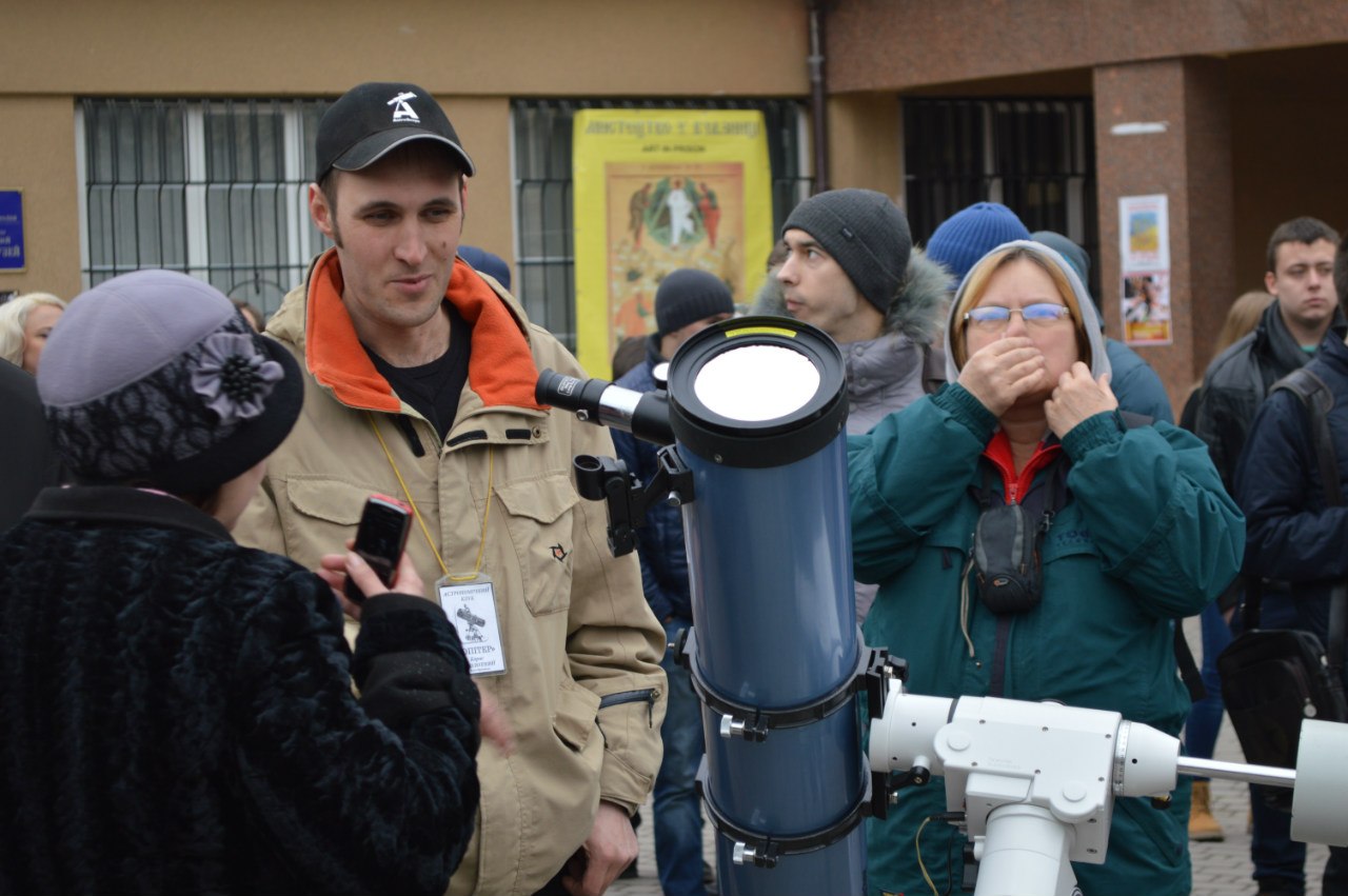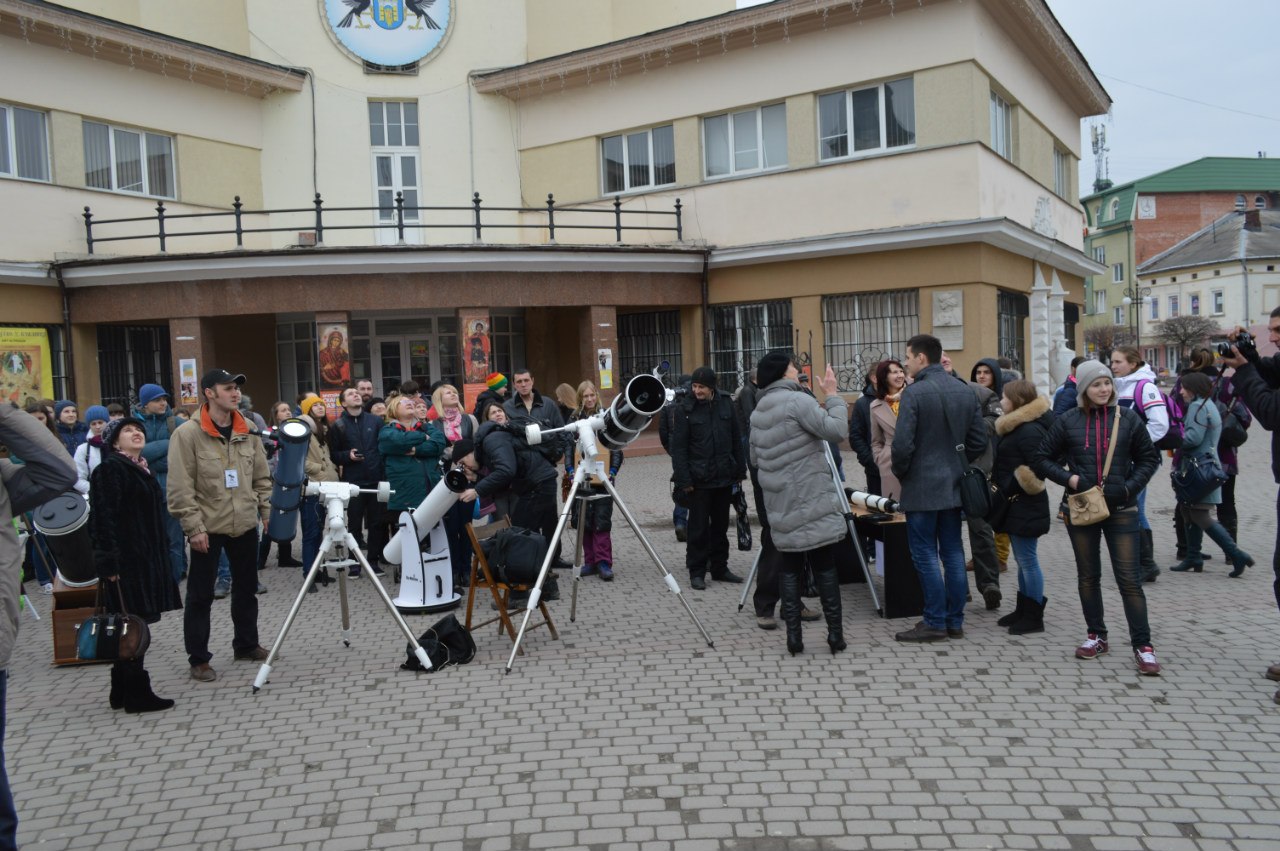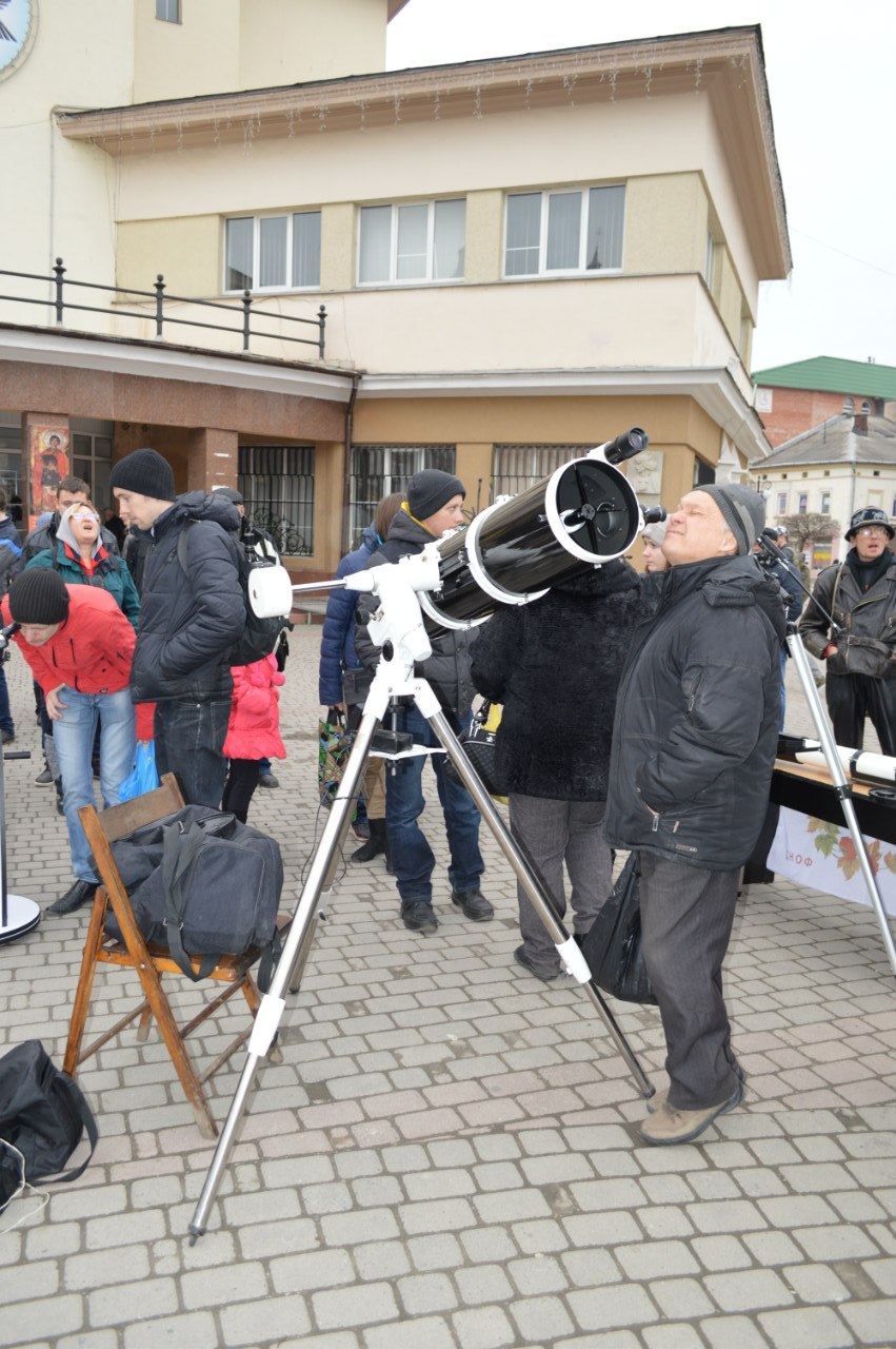 Сьогодні, 20 береня, на Площі Ринок Фонд "Сила Прикарпаття" спільно із астрономічним клубом "Юпітер" встановили 5 професійних телескопів, за допомогою яких можна побачити затемнення Cонця.