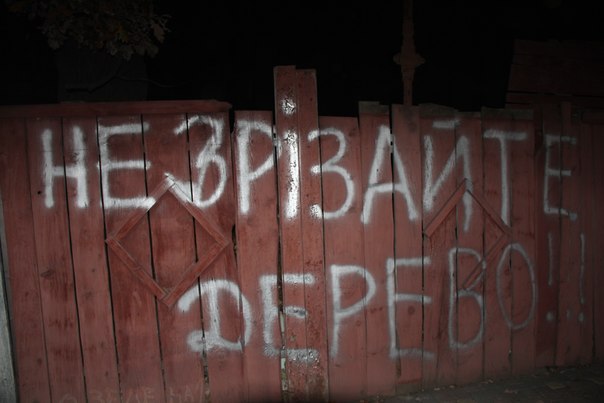 Не лише про свої оселі дбають гаркушівці. Ще одна підстава для конфлікту - 140-річний дуб. Забудовник вирішив зрізати дерево. Мешканці стали на захист "старенького" саджанця. В знак протесту - написи та малюнки із закликами на паркані.