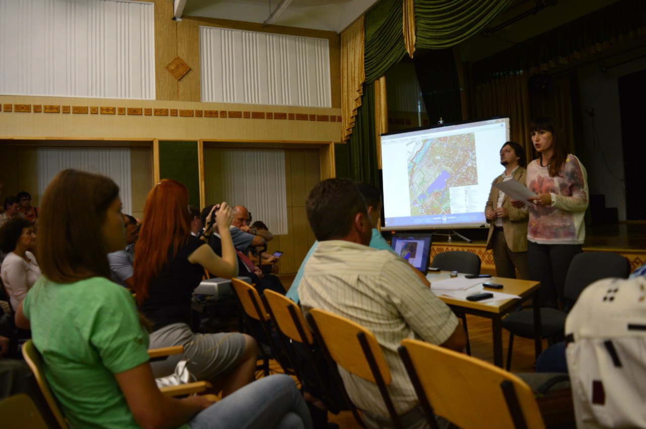 Громадська активіста ГО «Поступовий гурт франківців», юрист Світлана Романко зачитала колективне звернення громадських активістів до міського голови, депутатів міської ради та головного архітектора міста проти недопущення зміни цільового призначення зеленої зони загального користування території з боку вулиць Ленкавського – Гурика поруч міського озера.