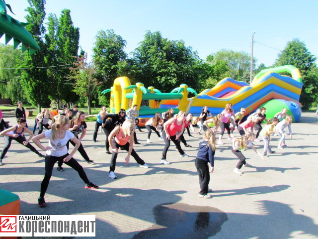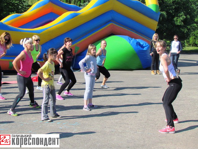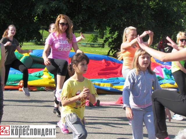 На міському озері з любителями активного дозвілля займалася фітнес-тренер Мар’яна Пахнюк, що спеціалізується на аеробіці та силових програмах, пілатесі, стретчингу та стрип-пластиці.